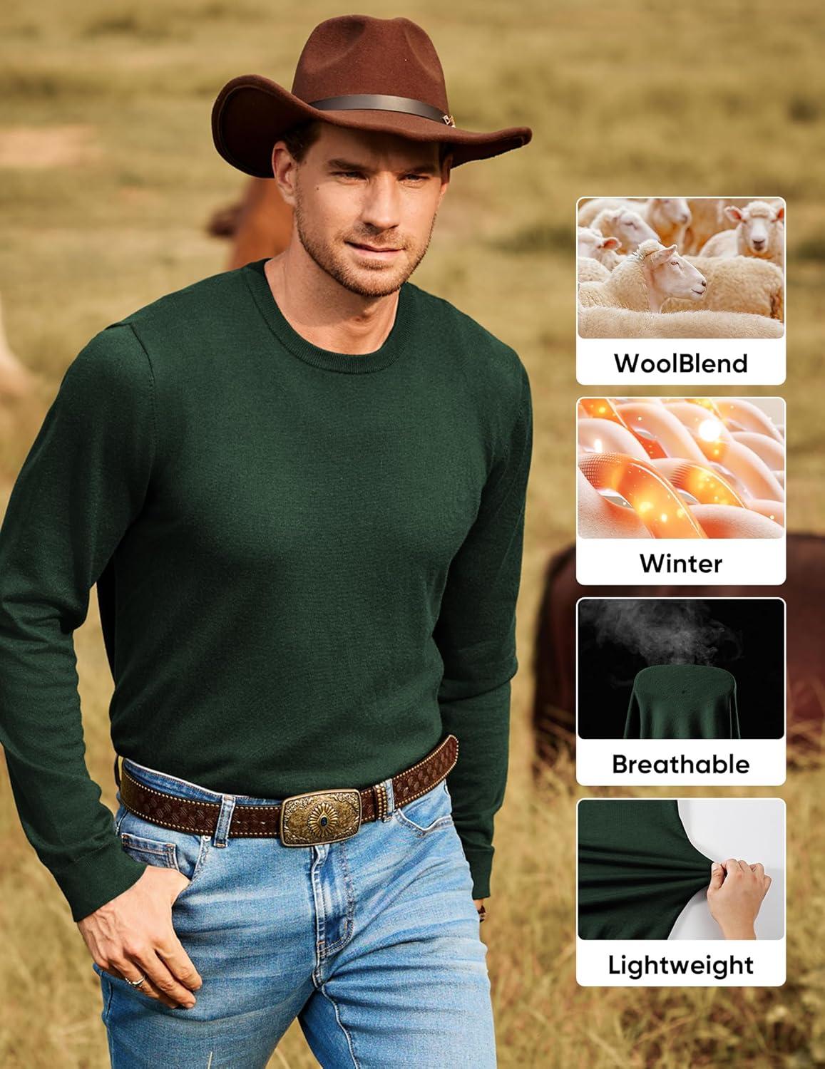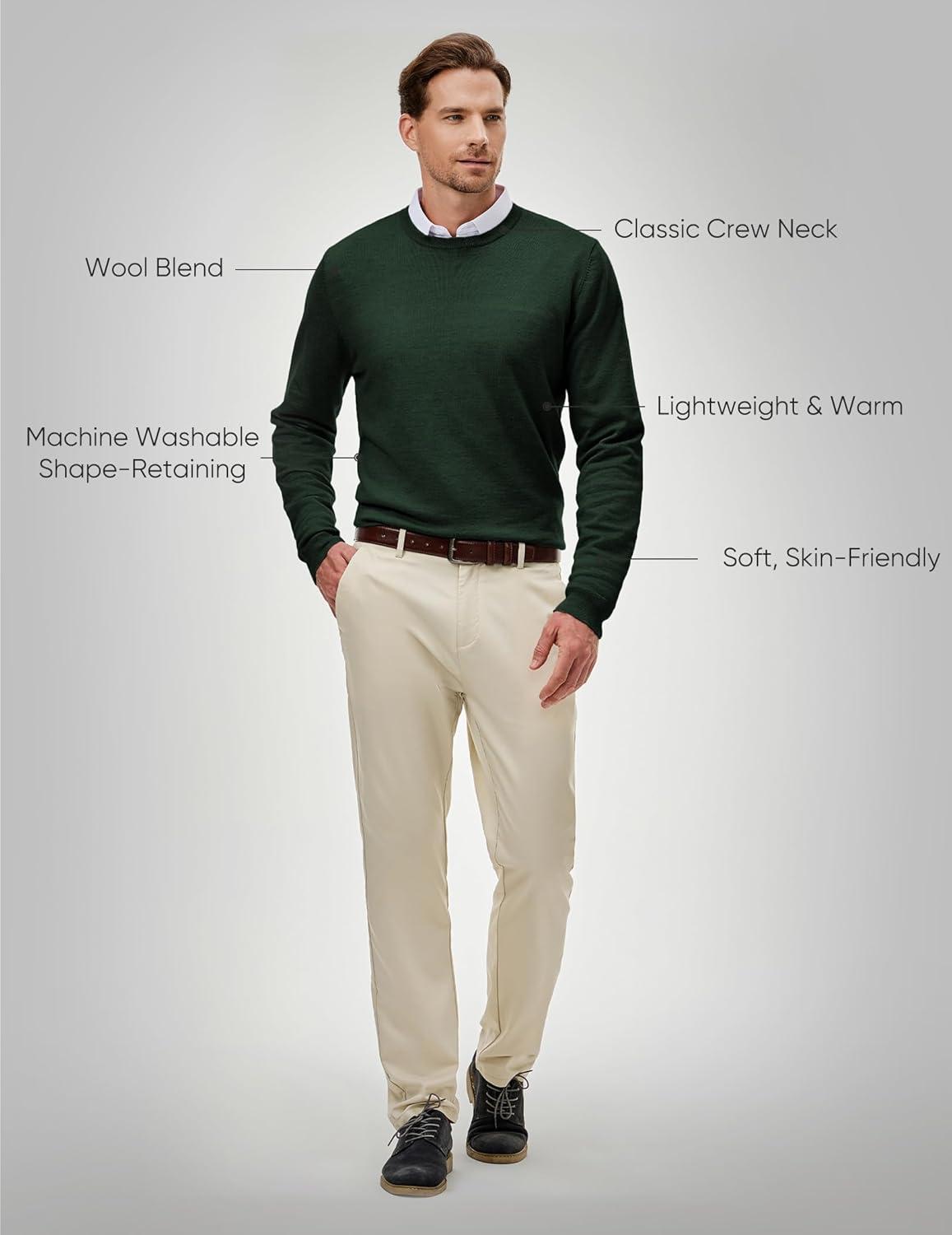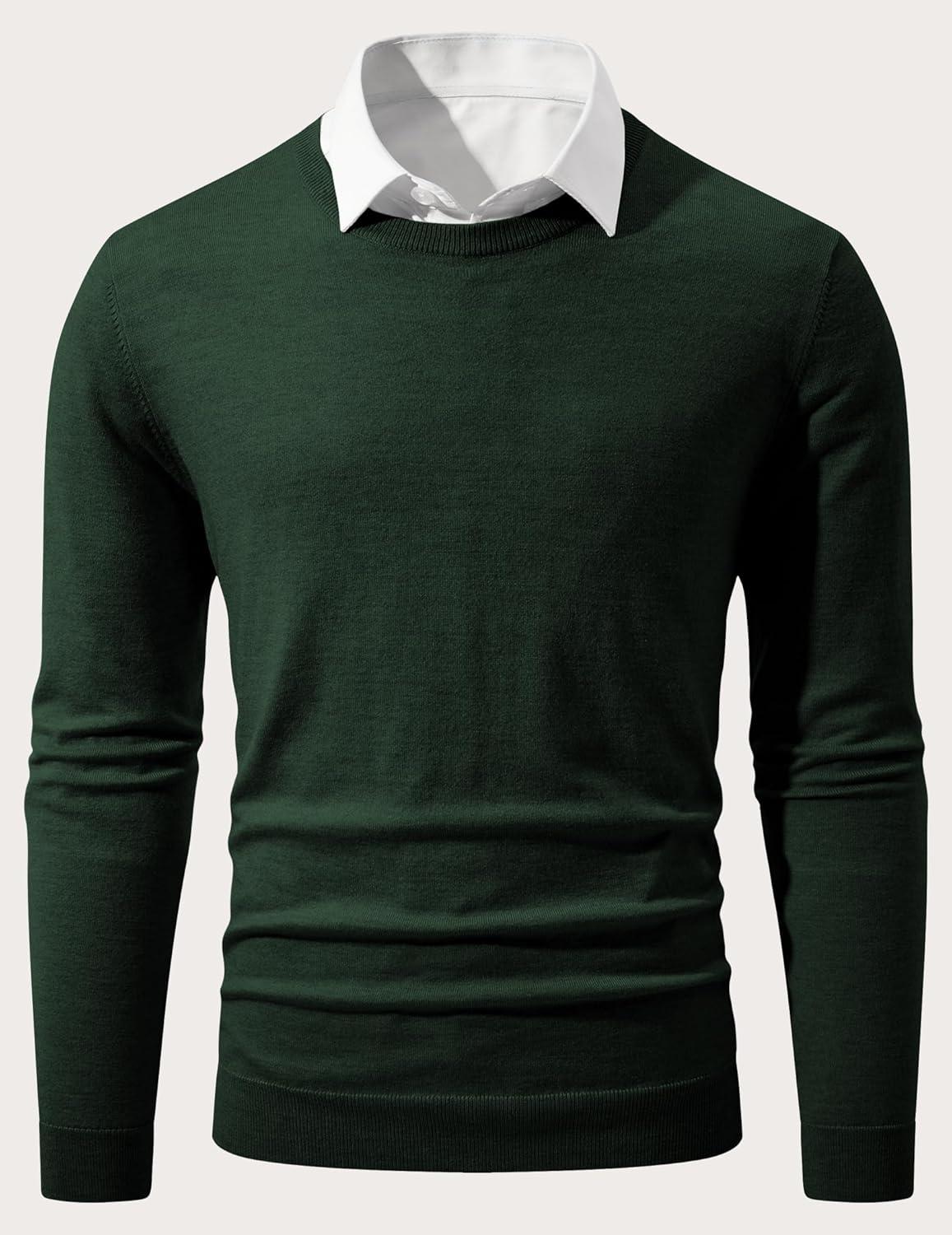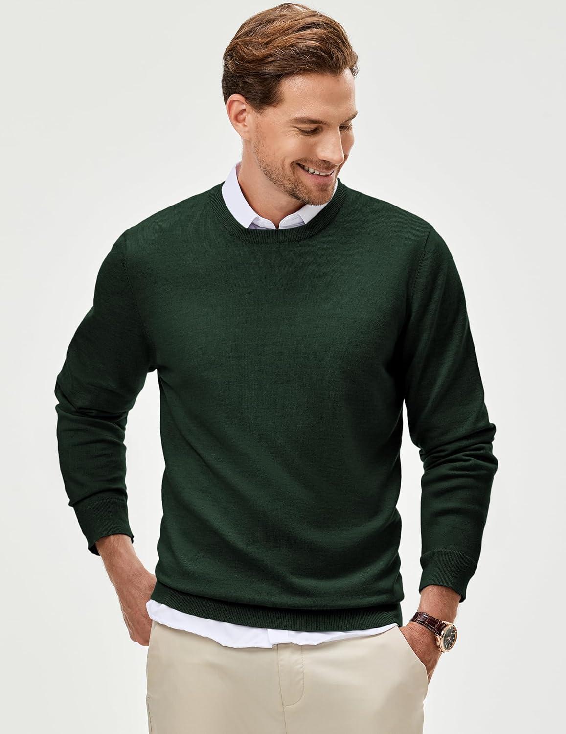 JMIERR Men’s Wool Blend Classic Crew Neck Casual Fall Sweaters(Clover Green)