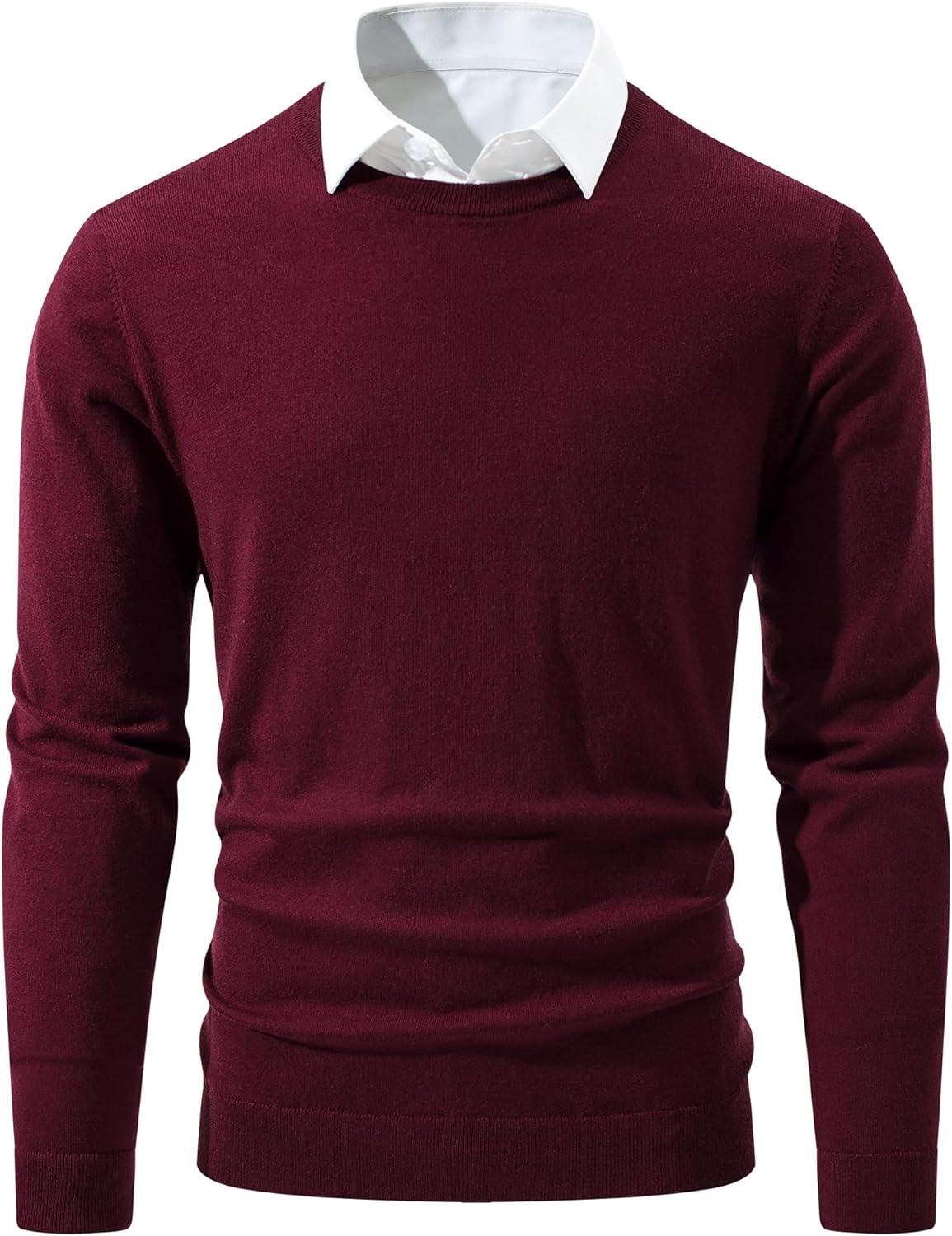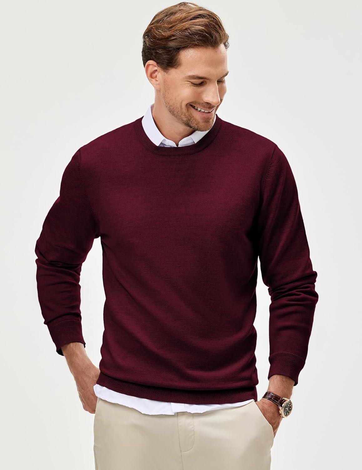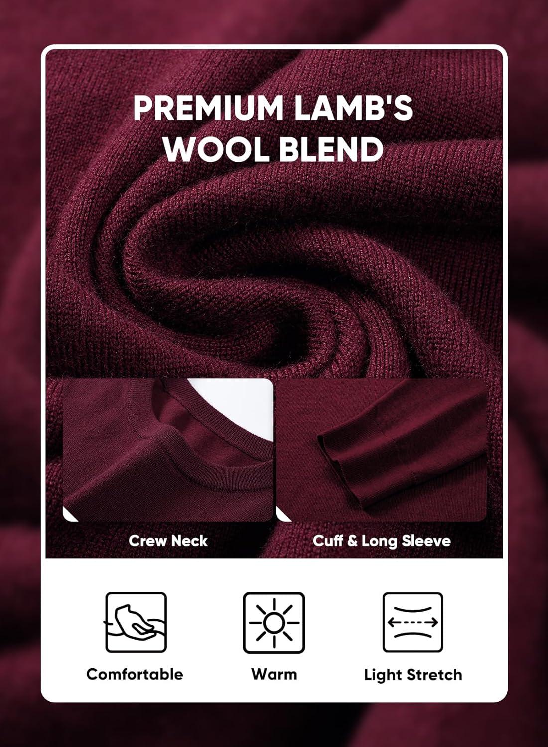 JMIERR Men’s Wool Blend Classic Crew Neck Casual Fall Sweaters(Dark Red)