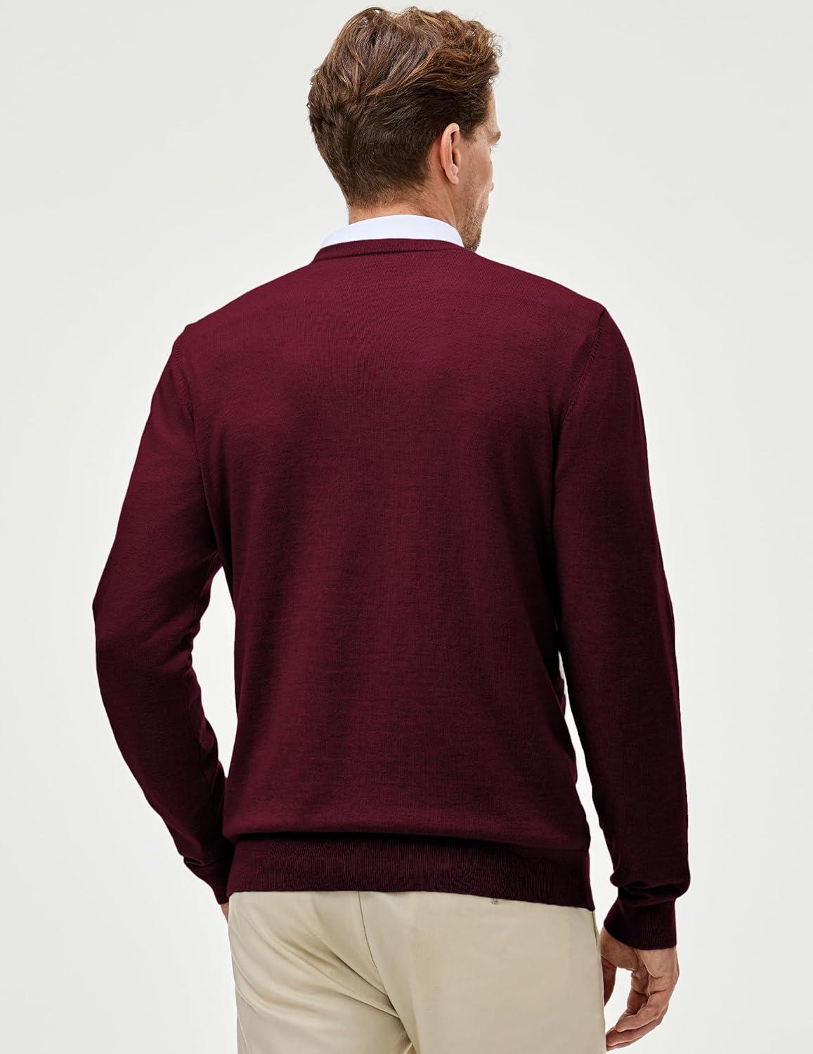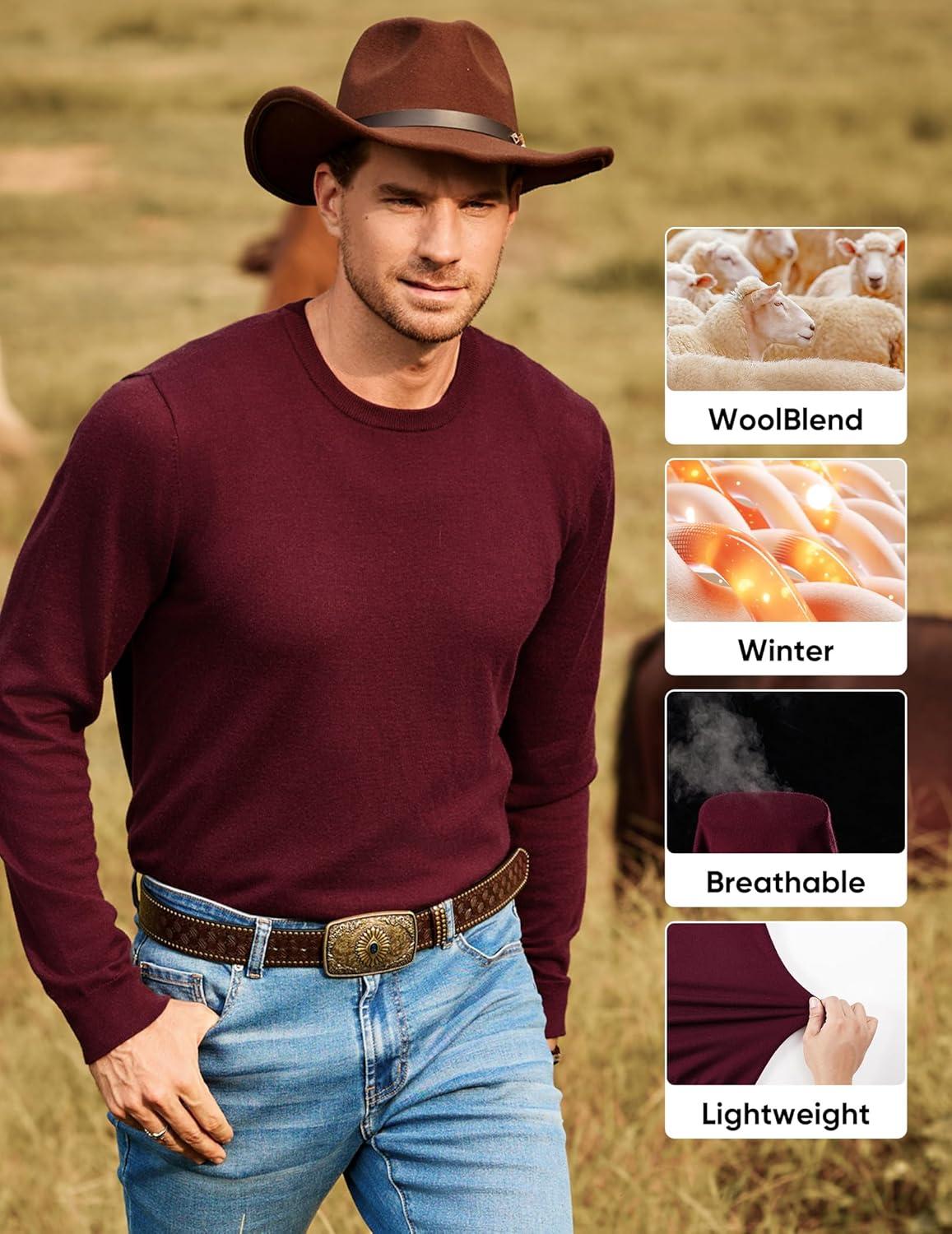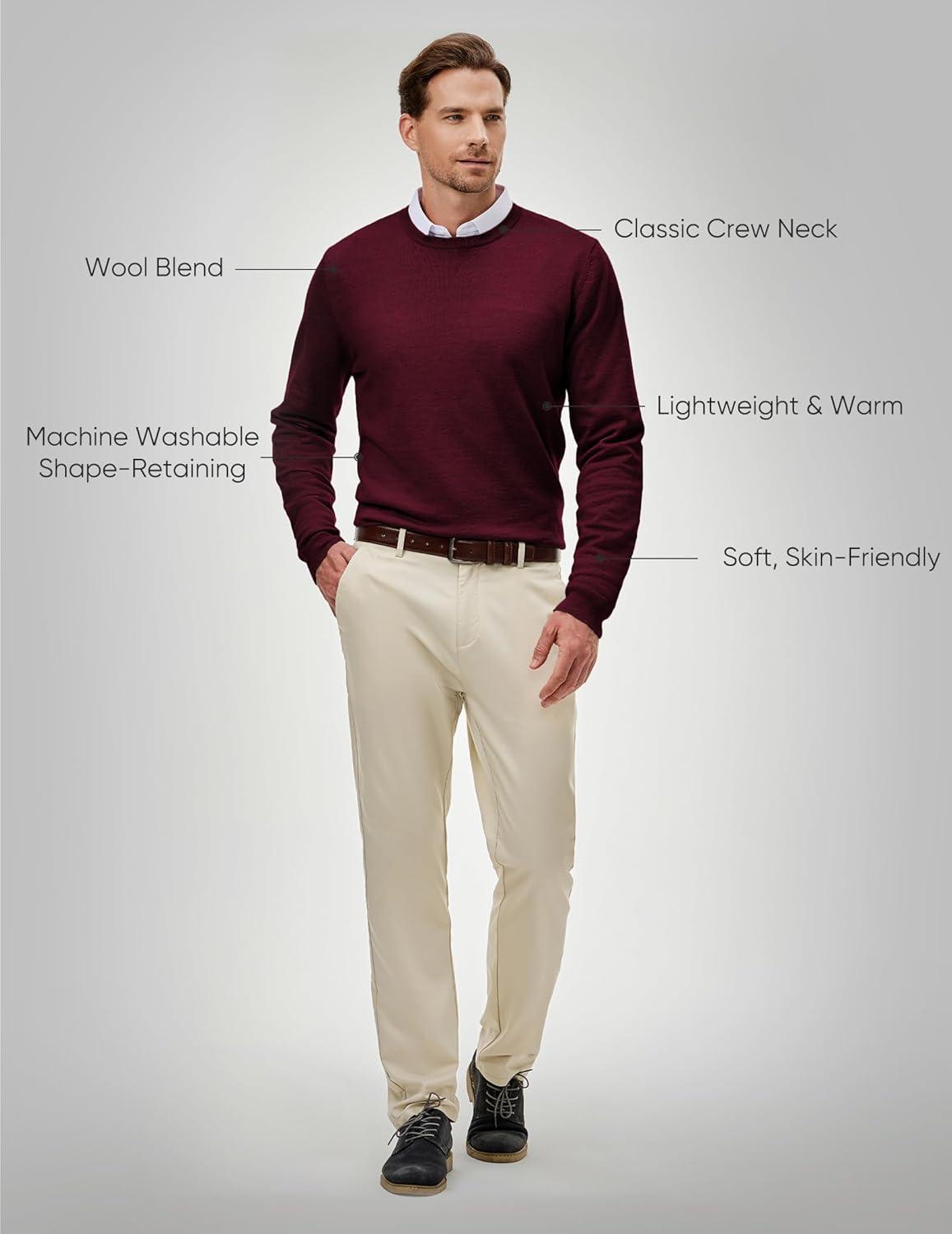 JMIERR Men’s Wool Blend Classic Crew Neck Casual Fall Sweaters(Dark Red)