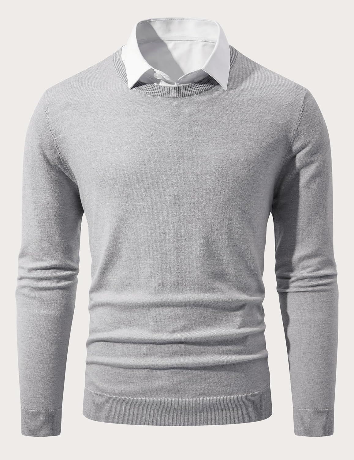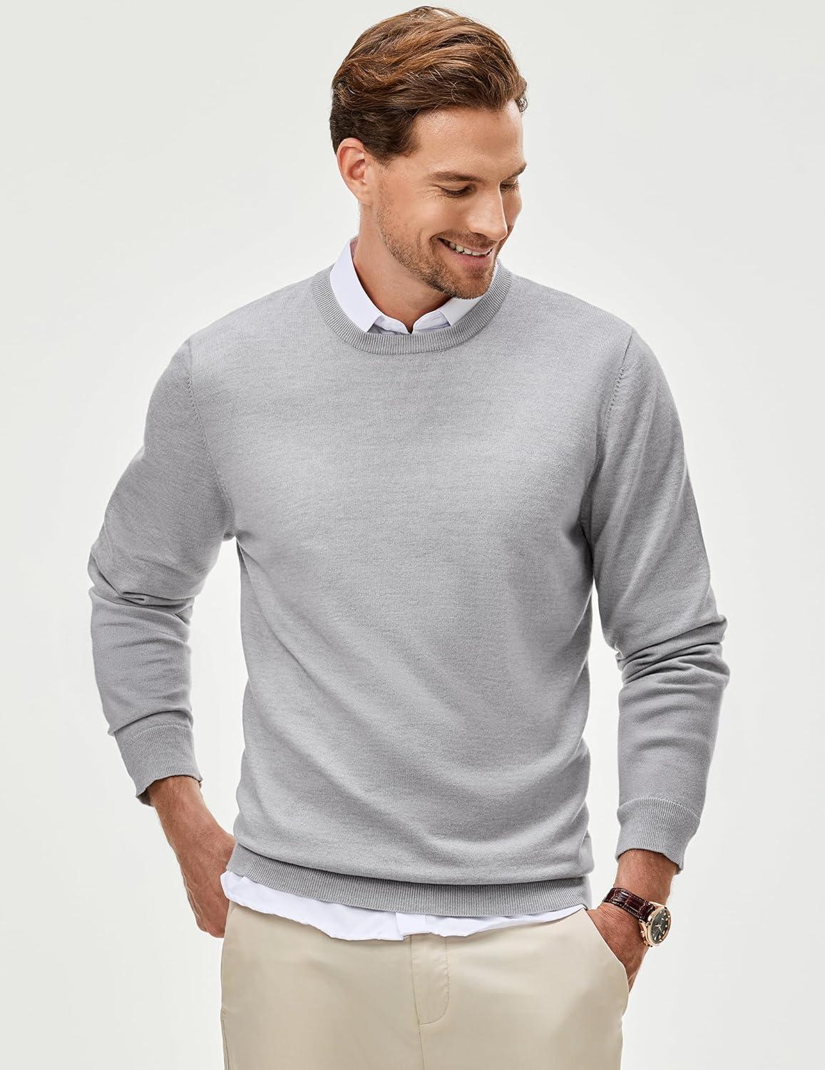 JMIERR Men’s Wool Blend Classic Crew Neck Casual Fall Sweaters(Light Grey)